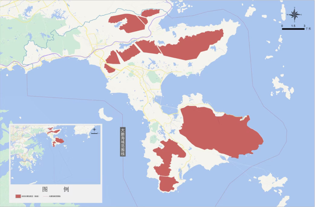△图中红棕色部分为大鹏新区当然灾害危急区