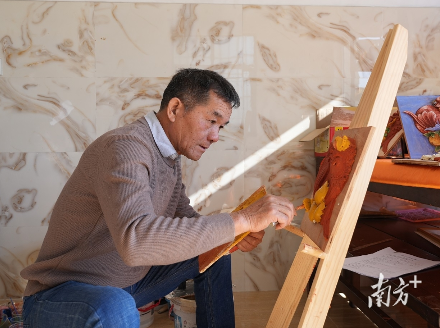 灰塑国度级代表性传承东说念主邵成村正在专心研讨手中的作品。
