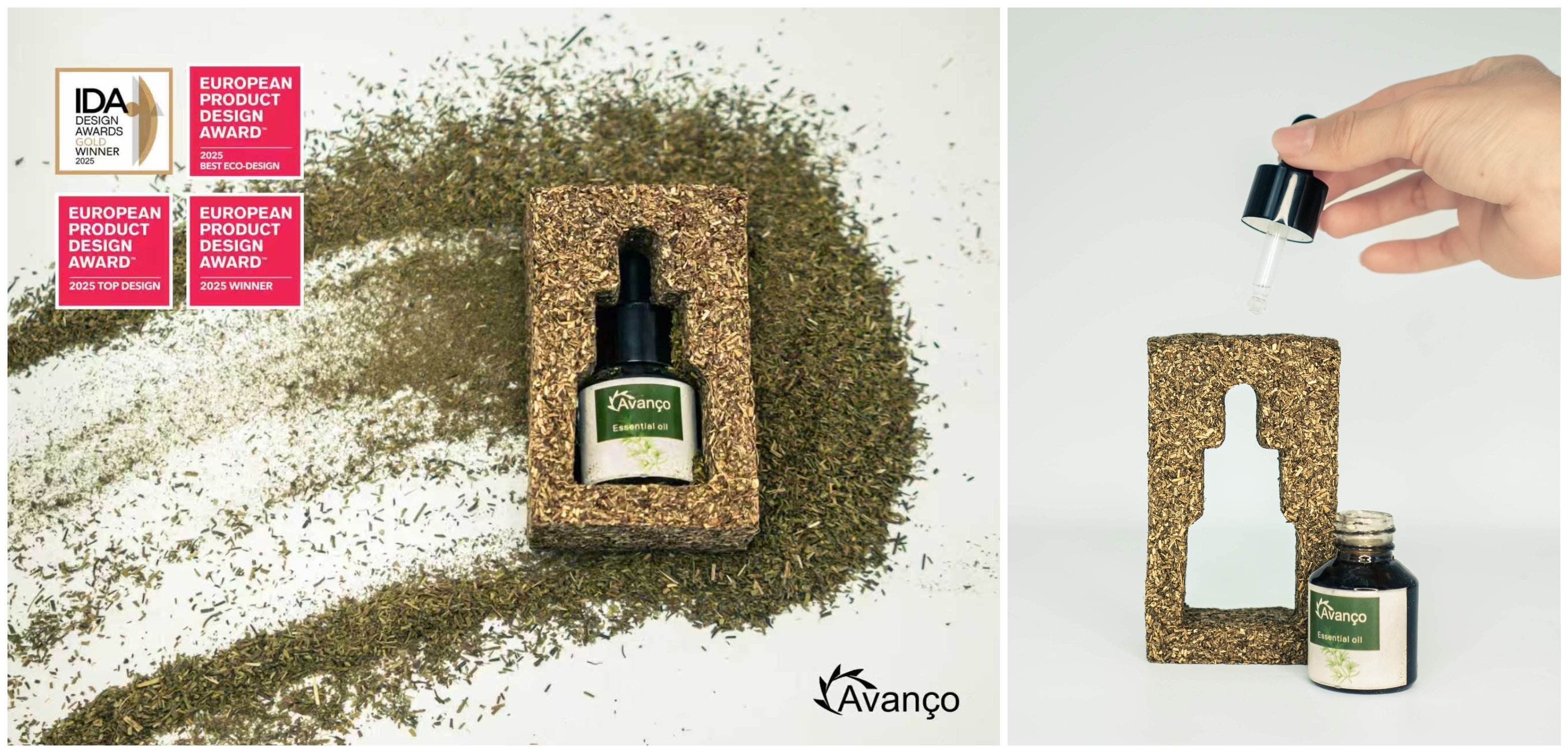 “澳露香”获奖的冲破性在于将生态价值滚动为蓄意话语。其产物包装块体,所以大方县迷迭香培植基地修剪和采收后剩余的边角料为原料,通过海藻基自然胶粘合制成的纤维复合材料,自带自然草本香气,且可罢了统统生物降解。包装块体因具有多孔性,可平直将精油滴于名义四肢扩香器使用。