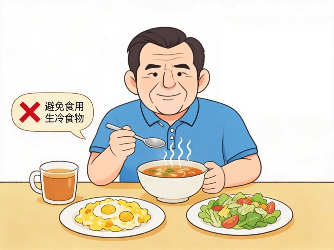 宜食用温热、富含优质卵白和维生素的食品,保持养分平衡。幸免食用生冷食品。