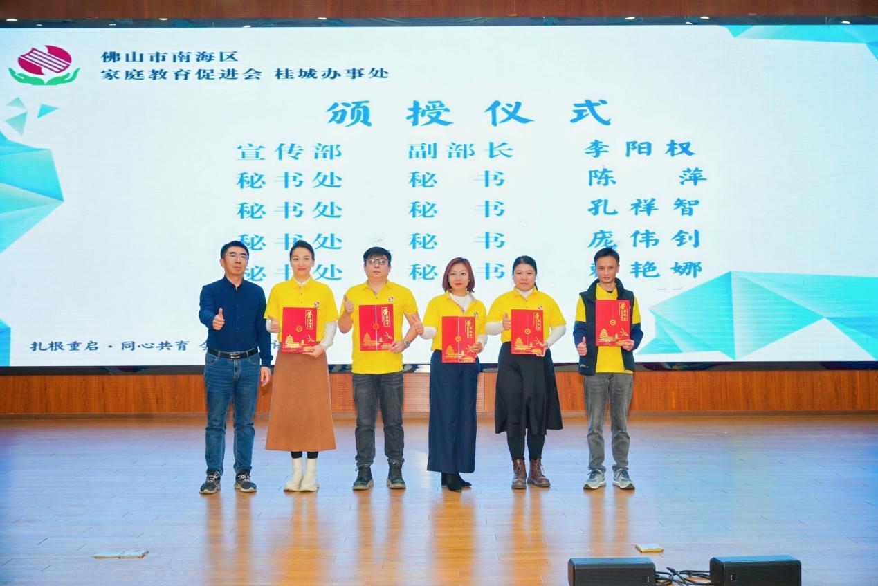 为健全组织架构,增强队伍凝华力,举止现场同步进行了桂城办事处宣传部与文牍处成员颁授庆典,这标记着桂城办事处组织缔造与里面处置体系进一步表率化、专科化。各部门成员将在“扎根重启·齐心共育”的总体主题下,高超引诱,共同推动家庭教会与家校共育各项管事落地履行。